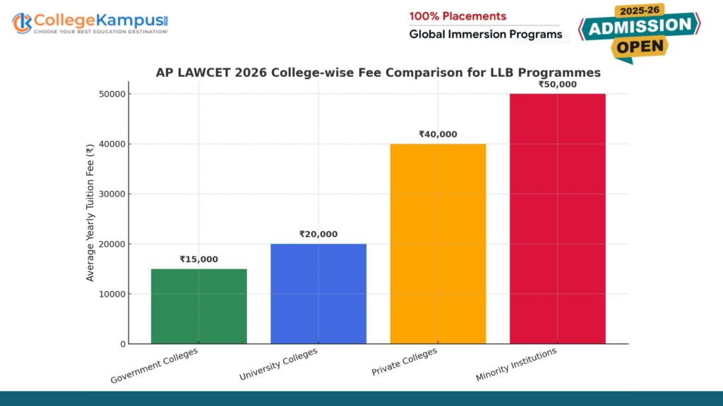 The fee structure varies depending on the type of institution (Government / Private / Minority). Below is an approximate college-wise fee range for AP LLB programmes: