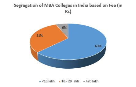Refer to the info-graphic below to get a detailed overview of the break-up of MBA colleges in India based on fee: