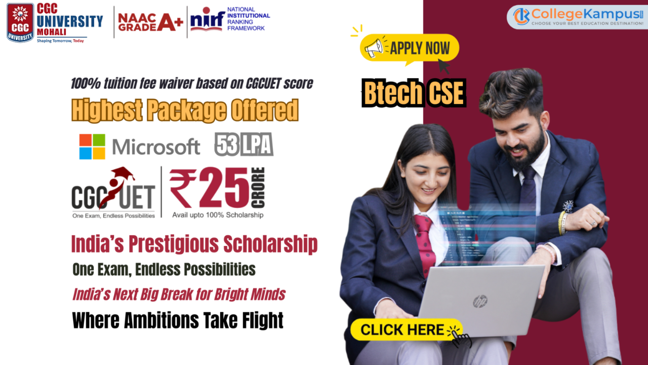 BTech CSE at Chandigarh Group of Colleges (CGC) Mohali Jhanjeri 2025 : CGCUET Scholarship Registration End Date, Admission, Fees, Syllabus, Placement, Highest Package.