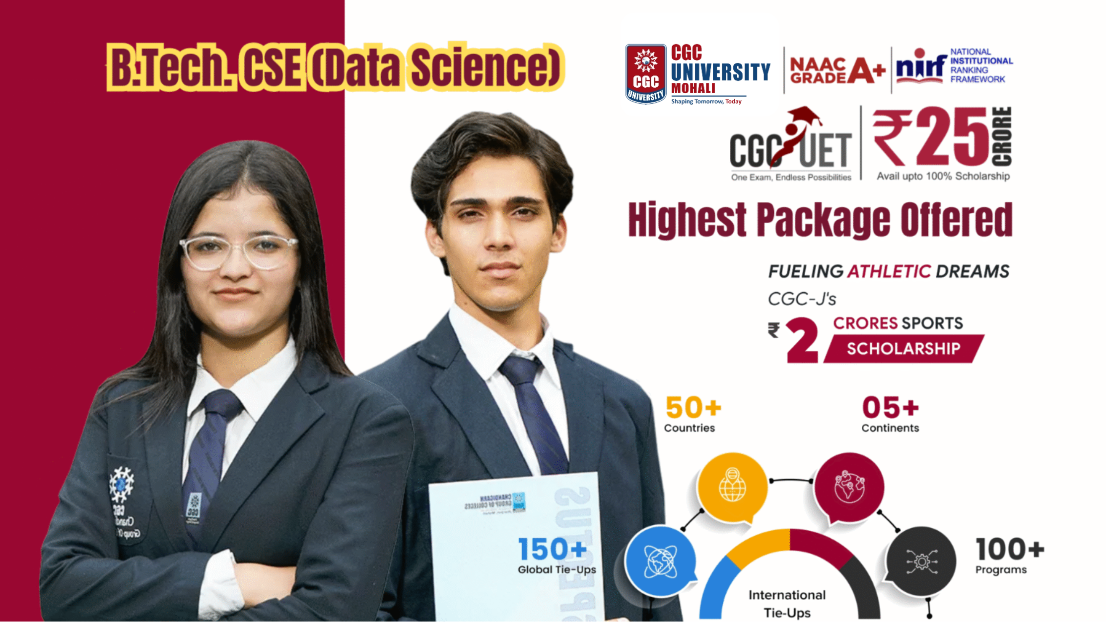 BTech CSE Data Science at CGC Mohali Jhanjeri 2025: CGCUET Entrance Exam, Scholarship, Registration Last Date, Admission, Fees, Syllabus, Placement, Highest Package & Related Courses!CCG University , Mohali