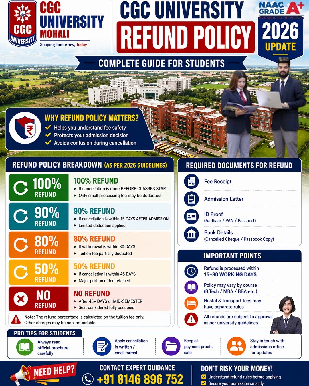 CGC University Mohali follows a transparent refund policy aligned with UGC (University Grants Commission) guidelines.