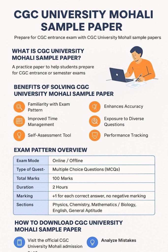 In this detailed guide, we’ll explore everything about the CGC University Mohali Sample Paper — including how to download it, its benefits, exam pattern, syllabus overview, preparation strategies, and expert tips to crack the entrance test confidently.