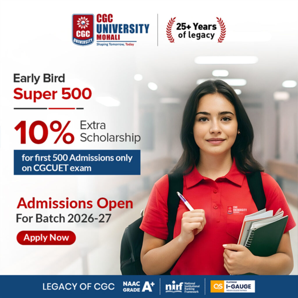 CGC University, Mohali has launched CGCUET that is One Exam, Endless Possibilities for students to ensure that financial setbacks don’t ruin their chances of building a great career. CGCUET Scholarships worth Rs 50 crore offer financial assistance to students aspiring to pursue Engineering, Management, Commerce, Law, Computer Application, Journalism, and Sciences courses at CGC University, Mohali. Read below more on CGC University Scholarship: