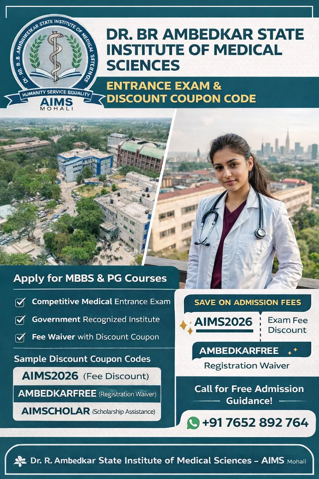 The Dr. BR Ambedkar State Institute of Medical Sciences Entrance Exam and Discount Coupon Code refers to special promotional or partner-based codes that help students get: