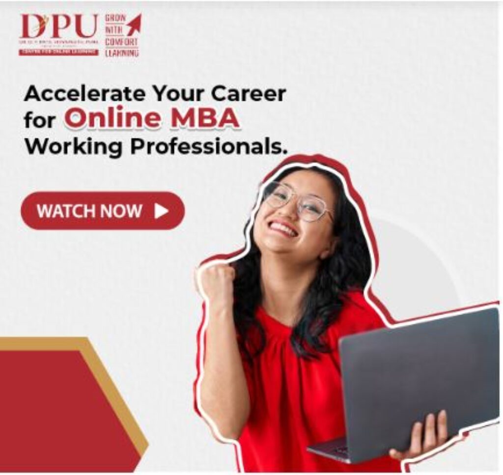 The online MBA program at D.Y. Patil Vidyapeeth is a prestigious and UGC-approved platform that provides a highly valued professional degree for working professionals. The curriculum intends to satisfy the needs of a global business environment. This curriculum provides individuals with the necessary skills, information, and a positive outlook. These online degree programs allow students to get a post-graduate management degree while bypassing the limitations of a traditional full-time MBA. Individuals can advance their professions and improve their abilities by enrolling in DY Patil Online courses.