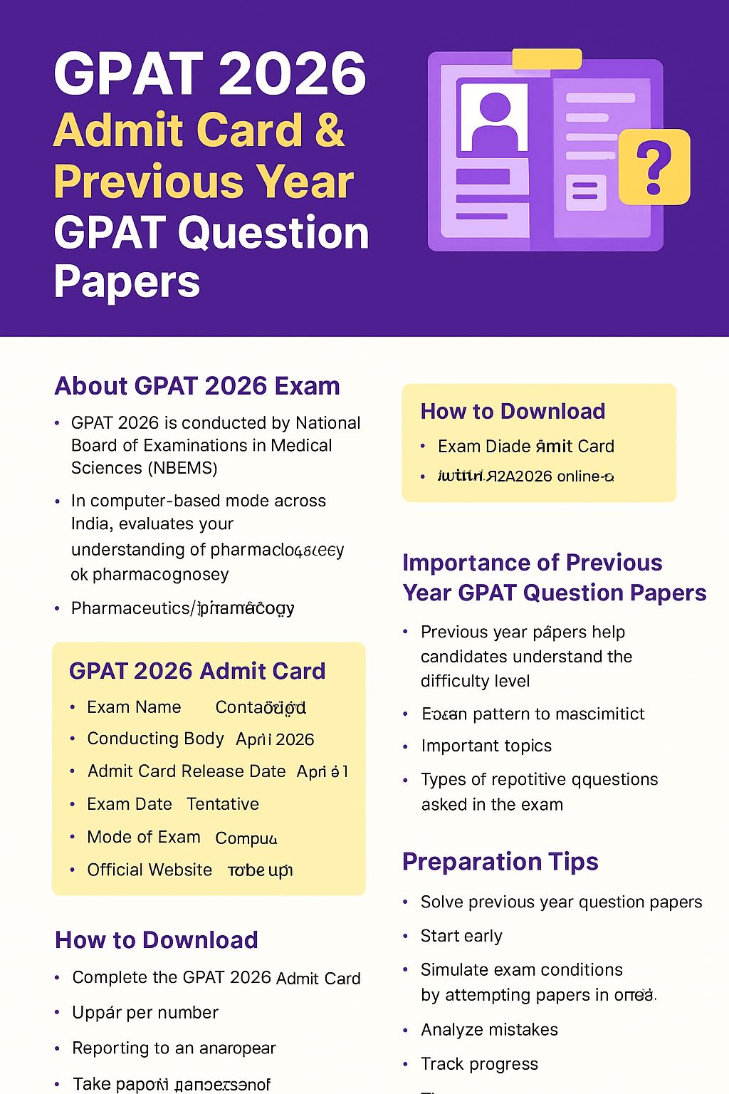 In this detailed guide, we’ll explore everything about GPAT 2026 Admit Card and Previous Year GPAT Question Papers, including important dates, download process, exam pattern, preparation tips, and FAQs. If you’re preparing for GPAT 2026, this article will serve as your complete roadmap to success.