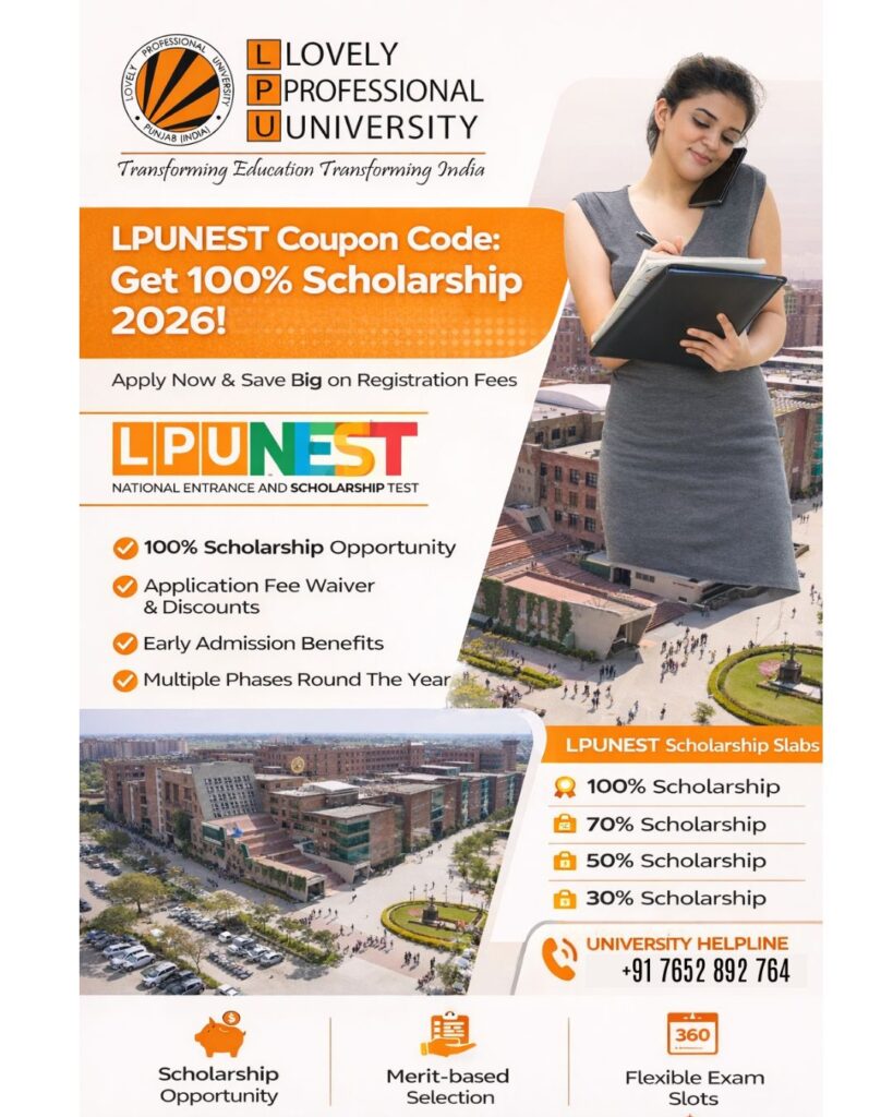If yes, this detailed guide will help you understand everything about the LPUNEST Coupon Code 2026, including how to use it, scholarship benefits, eligibility, exam details, and expert tips to increase your chances of getting up to 100% scholarship.