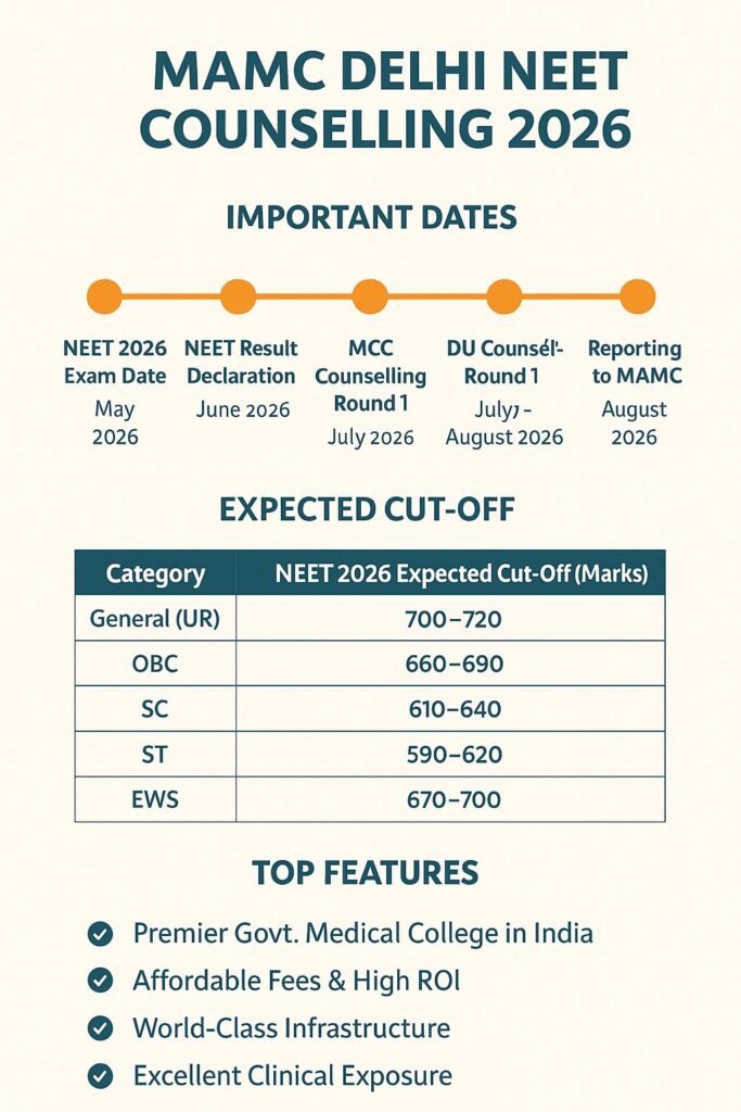 🗓️ Important Dates – MAMC Delhi NEET Counselling 2026 (Tentative)