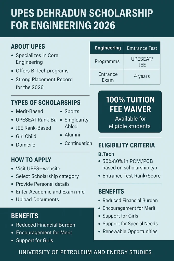 UPES Dehradun Scholarship for Engineering 2026: Complete Details, Eligibility, Benefits & How to Apply